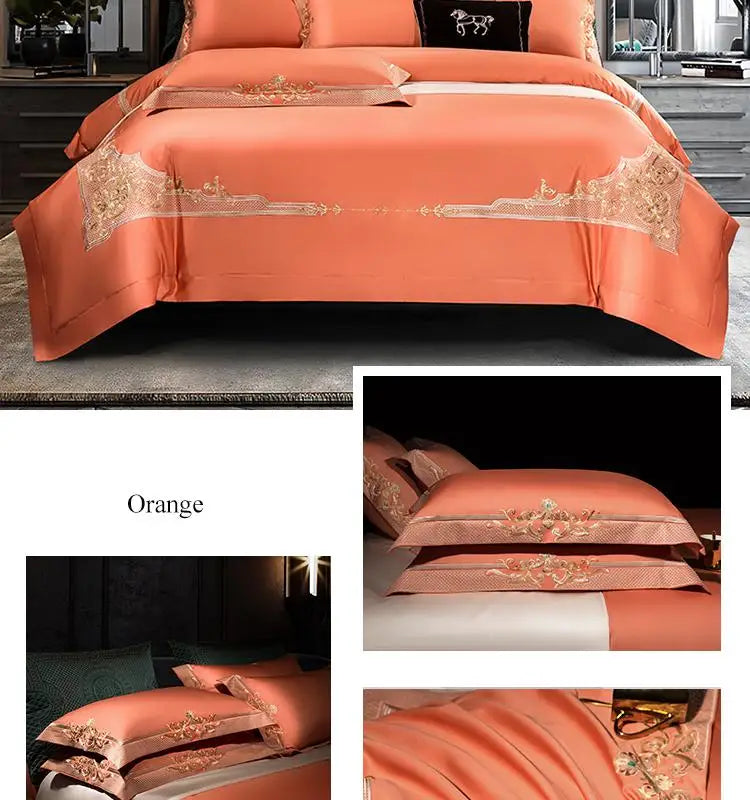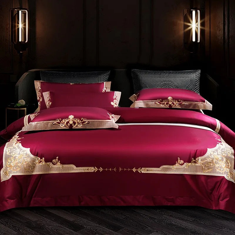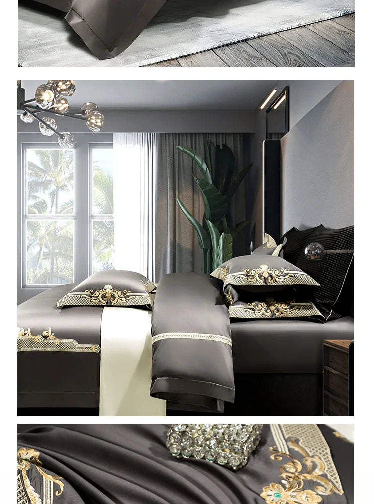 Take luxury from the palace to your bedroom with this Cleopatra luxury duvet cover set. Made from long staple Egyptian cotton, this luxury bedding set is incredibly soft and fluffy, whilst the gold embroidery adds a touch of class to a design that is refreshingly elegant and stylish.